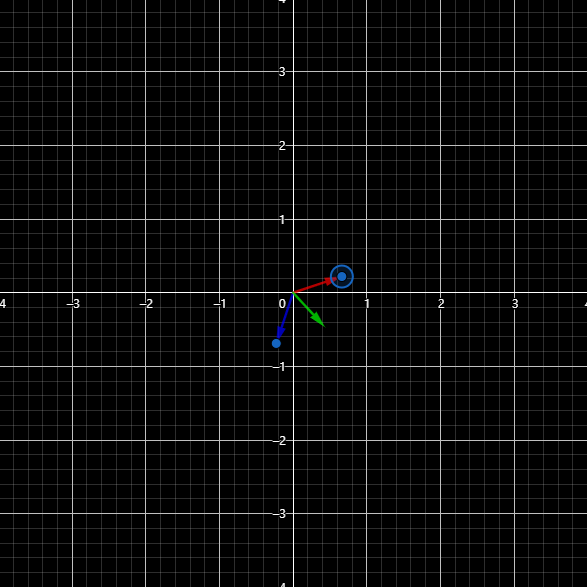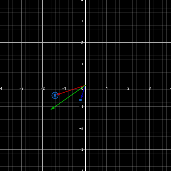 방향이 다른 두 벡터를 합과 크기를 조절하는 두 가지 연산을 사용하여 원하는 결과벡터를 만들 수 있다.